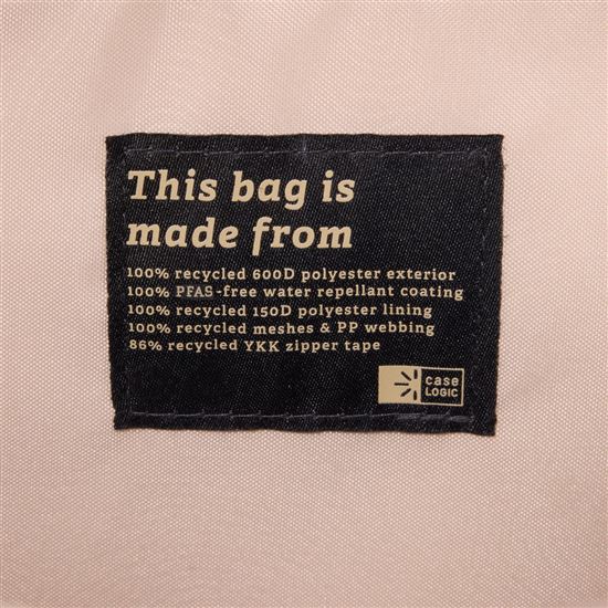 • Tato brašna je vyrobena ze 100% recyklovaného polyesteru 600D, polyesterové vnitřní výstelky 150D, síťoviny, PP pásků a z 86% recyklované tkaniny zipu YKK. Vodoodpudivá povrchová úprava rovněž neobsahuje PFC, chemické látky, které jsou škodlivé pro životní prostředí.