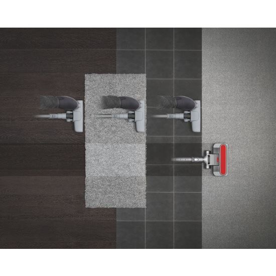 Sama se automaticky nastaví pro optimální utěsnění na všech typech podlah. Není potřeba měnit podlahové hubice.