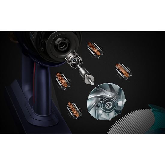 Dosud nevýkonnější motor7 Dyson, který dosahuje až 135 000 otáček za minutu a tak vytváří dosud nejvyšší sací výkon1 u akumulátorového vysavače.
