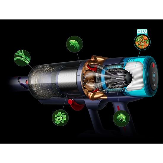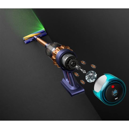 Vyspělý 10článkový lithium-iontový akumulátor zajišťuje až 70 minut chodu vysavače Dyson. Akumulátor vysavače Gen5detect™ má o dva články více než model V15 Detect™, čímž poskytuje vyšší napětí i výkon. Vyměnitelný akumulátor umožňuje prodloužit dobu provozu.