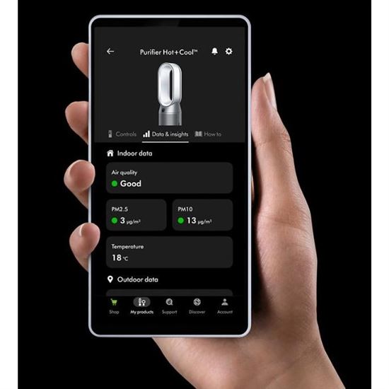 Aplikace MyDyson™ vám umožní zjistit, které znečišťující látky byly zachyceny, nastavit časové plány, či získat další informace.