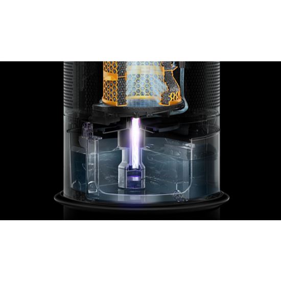 Technologie Dyson Ultraviolet Cleanse vystavuje každou kapku vody silnému UV záření o vlnové délce λ275 nm a hygienicky zvlhčuje vzduch.