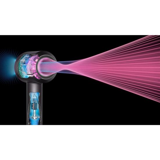 Malý, ale výkonný motor Dyson Hyperdymium™ generuje silný a precizně řízený proud vzduchu, který umožňuje rychlé a efektivní vysoušení vlasů. Díky optimalizovanému proudění vzduchu jsou vlasy usušeny rovnoměrně, zůstávají lesklé a hladké, aniž by došlo k jejich poškození nebo nadměrnému vysoušení. Tento motor poskytuje výkon potřebný pro rychlý styling a maximální kontrolu nad výsledkem.