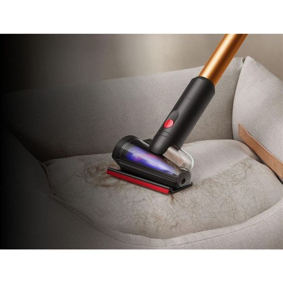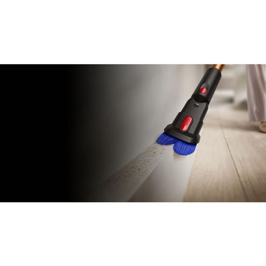 Na kobercích kombinuje výkon osvědčené kartáčové hubice Dyson Motorbar s Dyson Fluffy hubicí na tvrdých podlahách. Vše v jednom bez vyměňování.