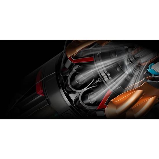 Dyson Hyperdymium™ 900 W motor. Výkonnější a přitom menší motor s vyšší účinností a přepracovaným difuzorem s reverzním prouděním, který vytváří sací výkon 315 AW.