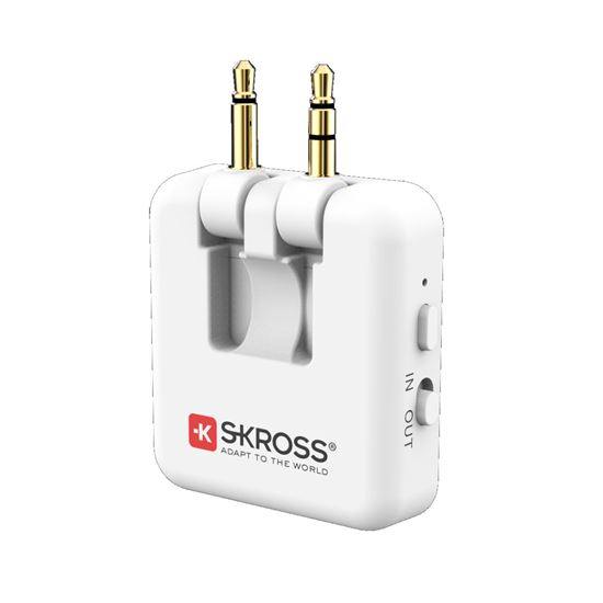 Konec univerzálním sluchátkům při cestách letadlem. Připojte se bezdrátově k vašim osobním sluchátkům a dejte sbohem překážejícím kabelům. SKROSS Wireless Audio Adapter pohodlně připojí vaše bezdrátová sluchátka i k televizorům, počítačům, autům, přenosným herním zařízením, posilovacím strojům a dalším. Obousměrný provoz: umožňuje zvuk bezdrátově přijímat do sluchátek nebo i vysílat ze zdroje do reproduktorů pomocí Bluetooth připojení. Poskytuje až 20 hodin výdrže baterie s nabíjením přes USB-C. Individuálně sklopné dva 3,5mm mini jack konektory zajišťují kompatibilitu s různými zařízeními s jedním nebo dvěma vstupy.