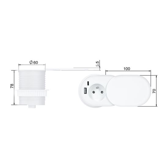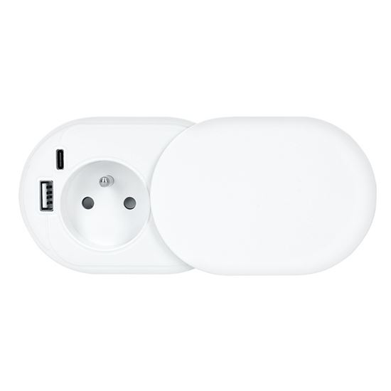 Posuvné víčko v matném bílém provedení působí elegantně a nenápadně, zejména v bílém nábytku. Posuvný mechanismus chrání zásuvku i nabíjecí porty před prachem a nečistotami. Navíc lze odhalit jen USB porty a síťovou zásuvku ponechat zakrytou. Zakryté víčko zachovává čistý vzhled pracovní plochy.