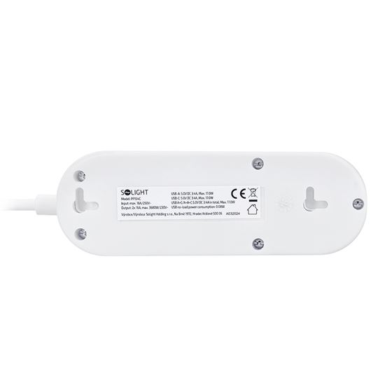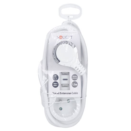 Solight 2z + USB A+C 17W, cestovní prodlužovací přívod 1.5m, bílý | SOLIGHT