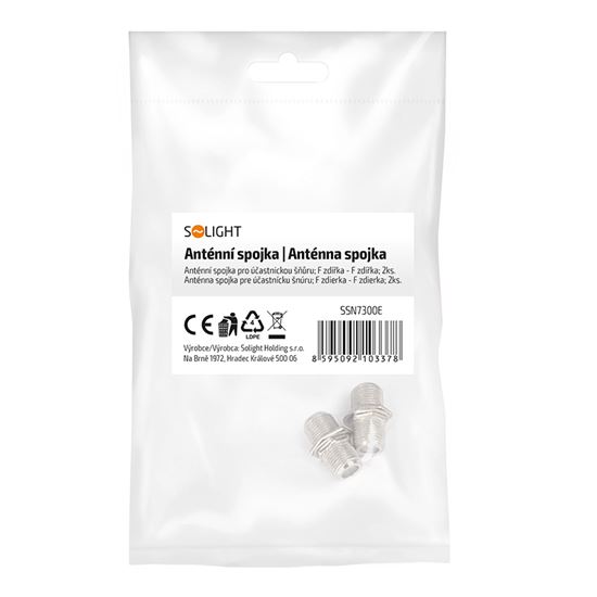 Solight anténní spojka, F zdířka - F zdířka, sáček, 2ks | SOLIGHT
