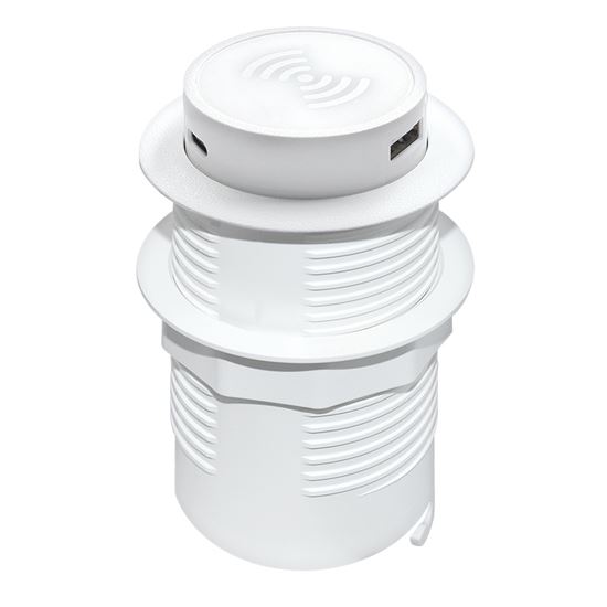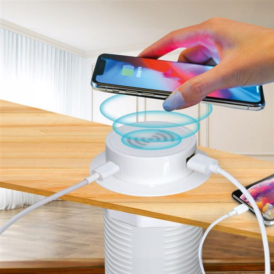 Bílé provedení s čistými liniemi působí moderně a nerušivě, ideálně zapadne do světlých interiérů a bílého nábytku. Po stisknutí se nabíječka vysune nad úroveň desky a je připravena k použití. Po dokončení nabíjení ji lze jednoduše zatlačit zpět, zůstane skrytá a chráněná před prachem a nečistotami.