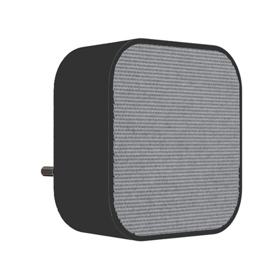 Matné černé provedení s jemnou strukturou na čelní straně imituje vzhled textilie, což dodává zvonku tradiční a domácký charakter. Design je jednoduchý, funkční a vhodný pro uživatele, kteří hledají klasické a nenápadné řešení pro každodenní použití.