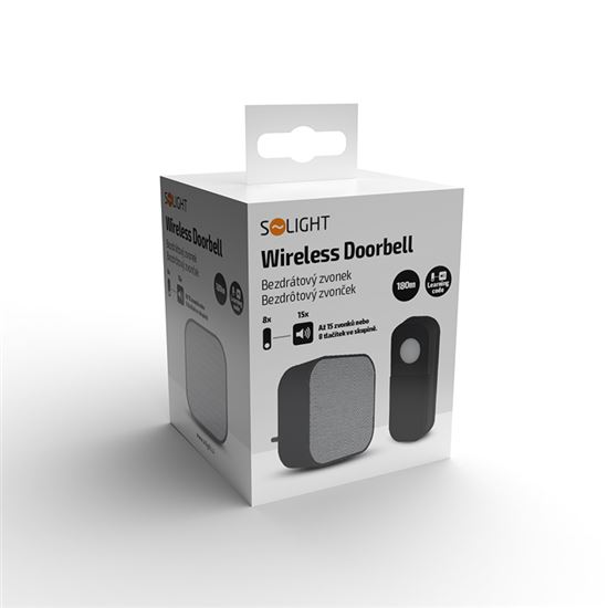 • Solight bezdrátový zvonek, do zásuvky, 180m, černý, learning code
