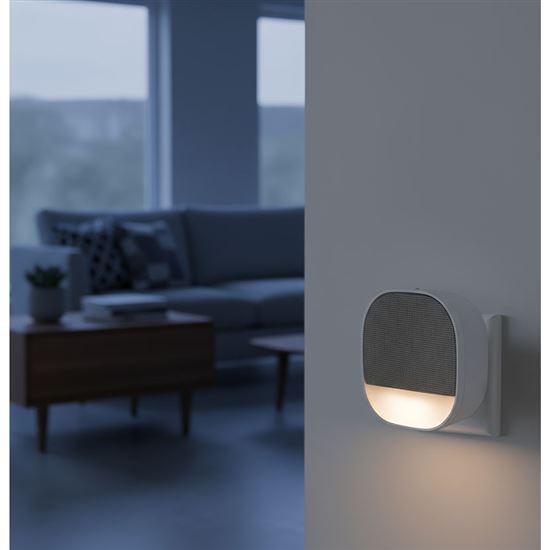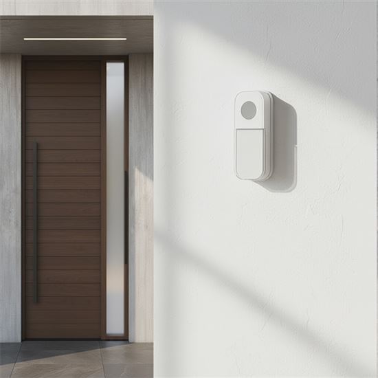 Dva v jednom – zvonek a noční světlo Tento model kombinuje funkci klasického bezdrátového zvonku s decentním nočním osvětlením. Integrované světélko svítí teplou bílou barvou, díky zaoblenému tvaru krytky neoslňuje a rovnoměrně ozařuje okolní prostor. O zapnutí se stará soumrakový senzor, který reaguje na pokles okolního světla. Noční režim lze snadno vypnout přímo tlačítkem na zvonku.