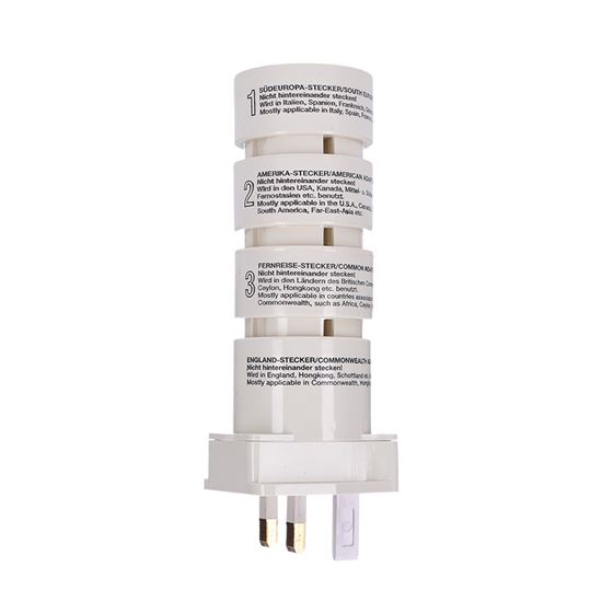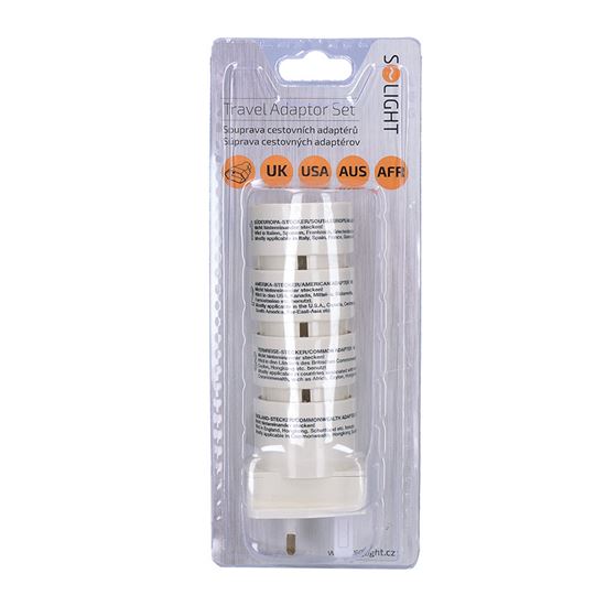 Sada cestovních adaptérů Adaptéry bez uzemnění umožňují připojení českých a evropských zařízení ve světě. Propojí dvoupólové neuzemněné kabely spotřebičů s evropskými, britskými, americkými, japonskými a dalšími zásuvkami. Dokonale se hodí pro všechna neuzemněná elektrická zařízení, jako jsou fotoaparáty, holicí strojky a nabíječky telefonů.
