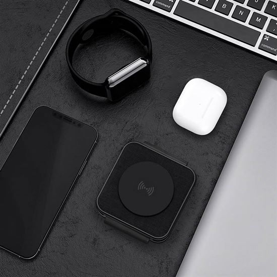 Druhá plocha s výkonem 3 W je výklopná a ideální pro Apple Watch, zatímco třetí plocha slouží k nabíjení bezdrátových sluchátek nebo dalšího telefonu.