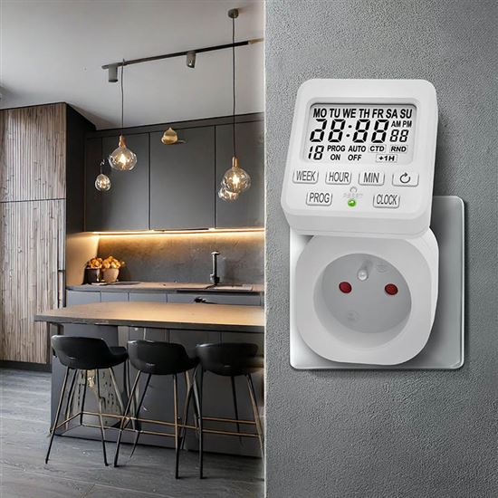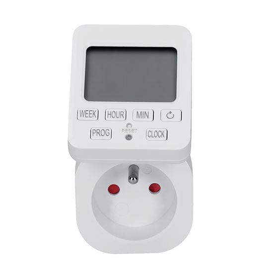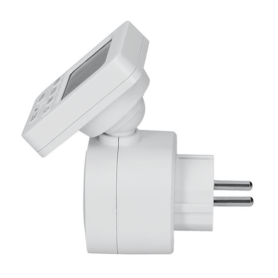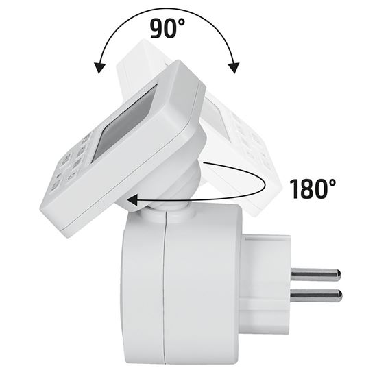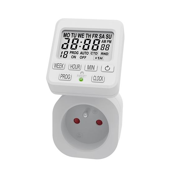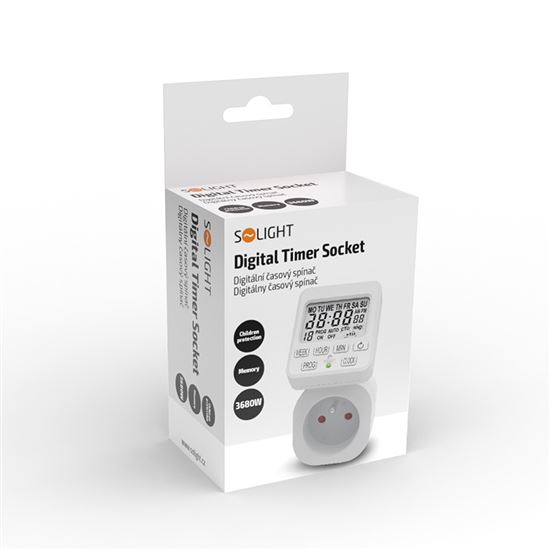 Digitální časový spínačTento časovač je vybaven přehledným LCD displejem, který lze natočit pro lepší čitelnost. Nabízí 18 denních spínacích cyklů a 15 skupin pro nastavení různých dní. Disponuje odpočtovým časovačem, dětskými pojistkami a pamětí pro uchování nastavených hodnot. Přesnost nastavení je 1 minuta, provozní teplota se pohybuje mezi -10°C a +40°C. Napájení 230V/16A (3680W).
