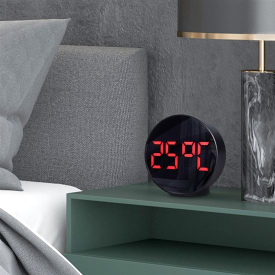Digitální hodiny s LED displejem a teploměrem. Tyto hodiny zobrazují čas a teplotu na LED displeji s možností přepínání mezi jednotkami °C/°F. Disponují třemi úrovněmi jasu a nočním režimem, který automaticky snižuje jas během nastaveného časového intervalu. Jednoduché nastavení budíku s možností jeho vypnutí zajistí pohodlné používání. Napájení 3× AAA bateriemi nebo přes DC 5V.