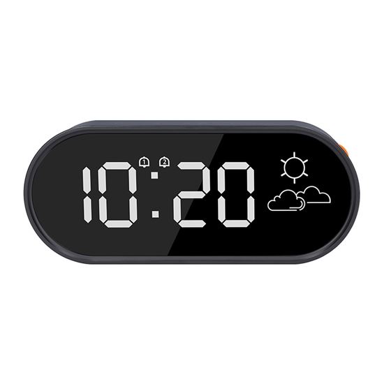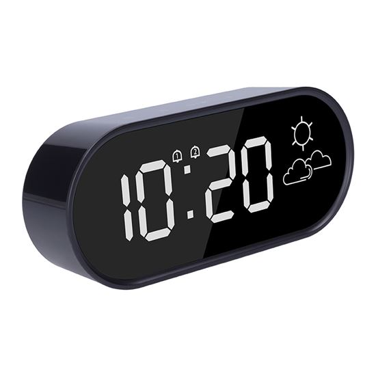Hodiny s předpovědí počasí, budíkem a USB nabíjením. Tyto moderní digitální hodiny s funkcí předpovědi počasí na základě změn atmosférického tlaku kombinuje stylový design s dotykovým ovládáním. Displej umožňuje zobrazení času nebo střídání času a teploty, kterou lze přepínat mezi °C/°F. Dvojitý budík s funkcí odložení (snooze) zaručí pohodlné buzení. Jas displeje lze regulovat otočným kolečkem. Praktický USB port umožňuje nabíjení dalších zařízení.