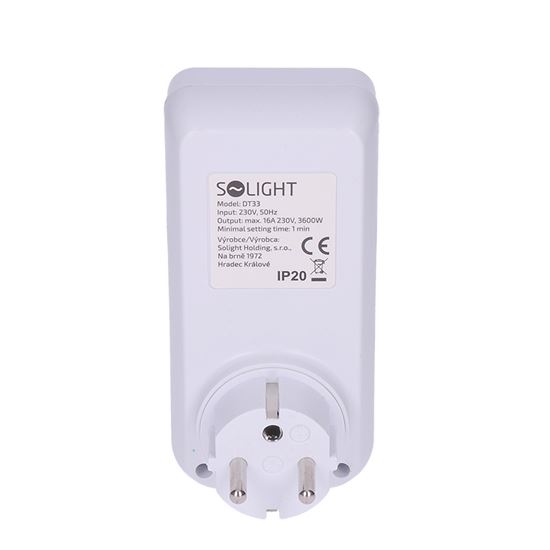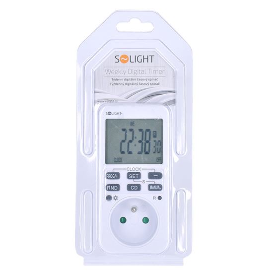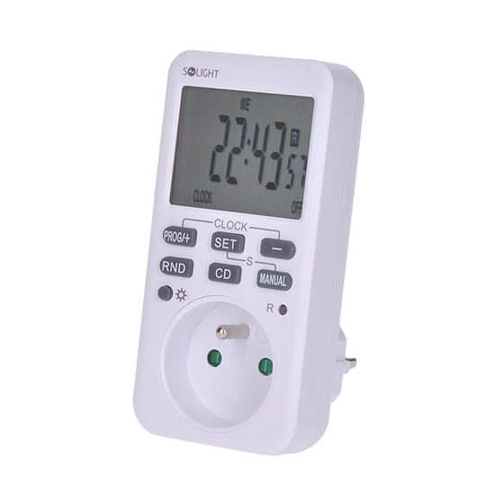 Digitální týdenní časový spínačTento digitální časovač disponuje velkým podsvíceným LCD displejem a LED indikátorem zapnutí. Nabízí automatický i manuální režim, 10 spínacích cyklů s minutovým rozlišením a 16 kombinací dnů. Obsahuje funkci letního času, odpočítávání až 99 hodin, 59 minut a 59 sekund a možnost náhodného spínání mezi 6:00 a 18:00 po dobu 10–31 minut. Má zabudovanou baterii s výdrží až 100 hodin pro uchování nastavení, dětské pojistky a pracuje na 230V/16A, 3600W. Provozní teplota se pohybuje mezi -10 °C až +40 °C.