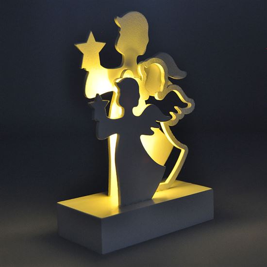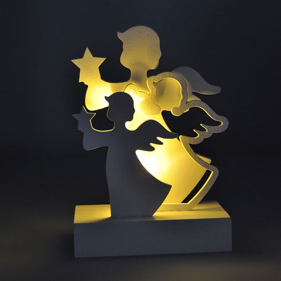Elegantní stolní vánoční dekorace ve tvaru stromku zaujme svými čistými liniemi a jemným teple bílým osvětlením. Tři integrované LED diody vytvářejí decentní svit, který doplňuje přirozeně bílé provedení dekorace. Rozměry 15 × 10,5 × 4,9 cm z ní dělají ideální ozdobu na noční stolek, komodu nebo dětský pokoj.