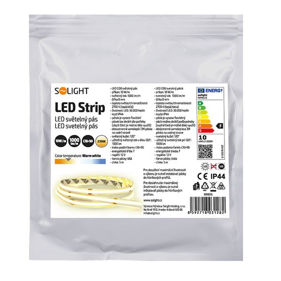 • Solight LED COB světelný pás 5m, 10W/m, 1000lm/m, CRi>90, IP44, teplá bílá