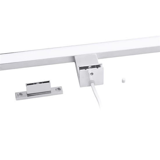 Osvětlení poskytuje neutrální bílé světlo s teplotou chromatičnosti 4000 K a světelným tokem 455 lm. Díky širokému vyzařovacímu úhlu 120° rovnoměrně nasvítí prostor před zrcadlem. LED technologie zaručuje dlouhou životnost až 20 000 hodin, zatímco kvalitní podání barev (Ra > 80) zajišťuje věrné zobrazení pokožky i make-upu.