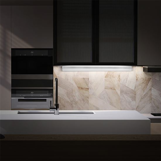 Výkonná LED trubice T5 s příkonem 13W poskytuje světelný tok 1050 lm v neutrální bílé barvě (4100K), což je ideální pro osvětlení kuchyňských linek, pracovních stolů i technických místností. Díky úhlu svícení 180° a kvalitnímu indexu podání barev (CRI >80) zajišťuje rovnoměrné a přirozené světlo. Trubice má integrovaný vypínač, flexibilní i pevný konektor pro propojení více svítidel do linie a přívodní šňůru (1 m). Napájení 220–240V, rozměry: 840 x 35 x 22 mm, krytí IP20. Energetická třída G, materiál: PC, barva: bílá.