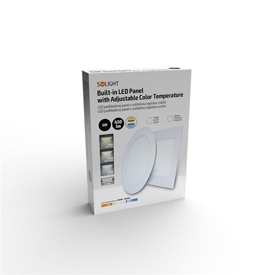 Praktický čtvercový LED panel s výkonem 6 W a možností volby barvy světla je skvělým řešením pro menší prostory nebo doplňkové osvětlení. Světlo lze přepínat mezi teplou (3000K), neutrální (4000K) a studenou bílou (6000K) dle potřeby. Panel poskytuje světelný tok 450 lm a má široký úhel svícení 160°.