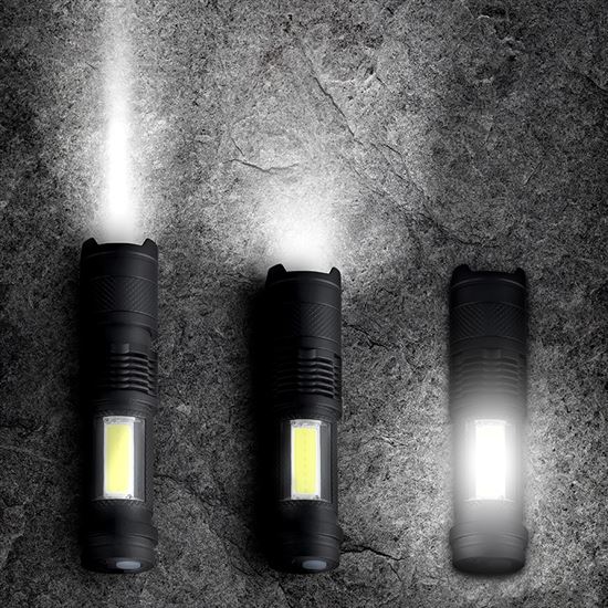 Kompaktní nabíjecí LED kapesní svítilna je ideální pro každodenní použití doma, na cestách i v přírodě. Disponuje dvěma zdroji světla – předním (100 lm) a bočním (70 lm), mezi kterými lze snadno přepínat. Na výběr máte ze tří režimů: 100% přední, blikání přední a 100% boční světlo. Svítilna je vybavena praktickým zoomem pro nastavení světelného kuželu a má odolnost IP44 pro outdoorové použití. Napájí ji Li-Ion baterie 400mAh s výdrží 1–2 hodiny a dobíjí se pomocí USB-C konektoru (doba nabíjení 2 hodiny). Rozměry 100 x 26 mm a černý design z ní dělají praktický a stylový nástroj. Dodává se v display boxu po 6 kusech.