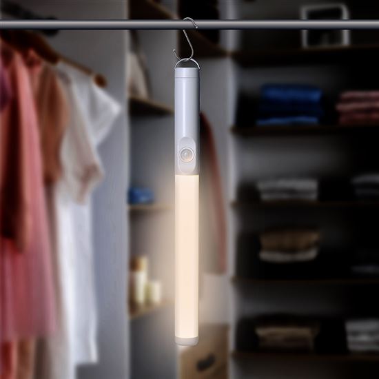 Praktické LED světlo se zabudovaným pohybovým senzorem (PIR) je ideální pro osvětlení skříní, šatníků nebo technických prostor. Automaticky se rozsvítí při detekci pohybu a po 30 sekundách nečinnosti se opět vypne. Příjemné teplé bílé světlo (3000K) s výkonem 200 lm zajišťuje výbornou viditelnost.