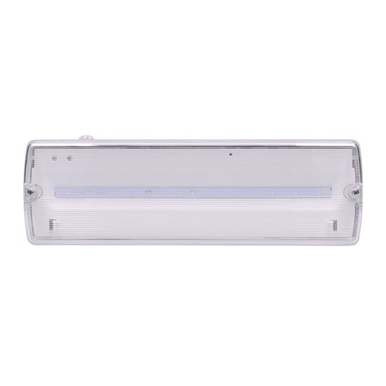 Nouzové LED svítidlo s příkonem 4 W nabízí světelný tok 200 lm (130 lm v pohotovostním režimu) a dlouhou životnost 30 000 hodin. Baterie LiFePo4 3,2V 1000mAh poskytuje výdrž v režimu nouze minimálně 3 hodiny. Automatický test stavu baterie (měsíční/půlroční) a sada piktogramů jsou samozřejmostí.