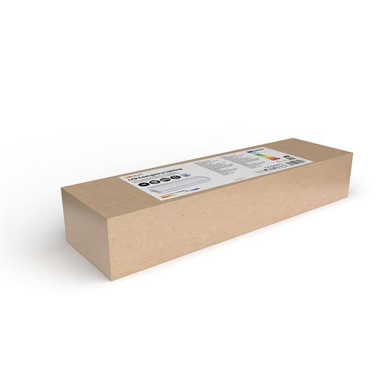 Tělo svítidla z odolného polykarbonátu a krytí IP65 zaručují spolehlivý provoz v náročném prostředí. Teplota světla 6500K, CRI>80, úhel svícení 120°. Rozměry: 352x110x67 mm, barva bílá. Napájení AC 220–240V, LED zdroje nelze měnit. Energetická třída G.