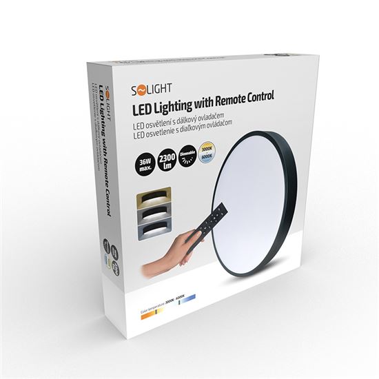 • Solight LED osvětlení s dálkový ovladačem LECCE, 36W, 2300lm, 30cm, změna chromatičnosti, stmívatelné, černá