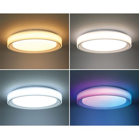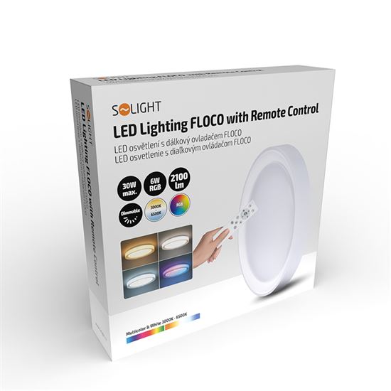 Floco je stmívatelné LED svítidlo s moderním designem, které navíc nabízí barevné RGB osvětlení pro vytvoření atmosféry dle vaší nálady. Pomocí dálkového ovladače snadno nastavíte teplotu světla (3000K–6500K), zvolíte z přednastavených módů svícení nebo upravíte intenzitu světla. Kombinovaný výkon 30W + 6W (RGB) a světelný tok až 2100 lm poskytují dostatečné osvětlení pro obývací prostory i ložnice.