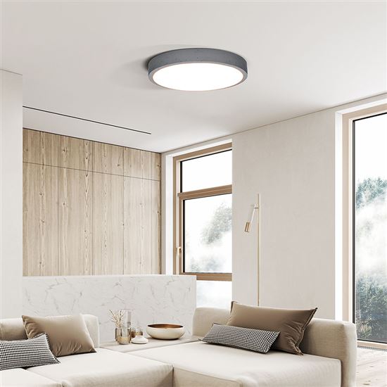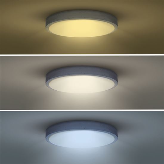 LED stmívatelné svítidlo Grey s povrchovou úpravou v dekoru šedého betonu přináší netradiční vzhled a chytré funkce do každého moderního interiéru. Dálkové ovládání umožňuje nastavení teploty světla v rozsahu 3000K až 6500K, plynulé stmívání a volbu z několika světelných režimů. Svítidlo má maximální příkon 48 W a světelný tok až 3360 lm (pro 4000K), čímž zajišťuje dostatek světla i pro větší místnosti.