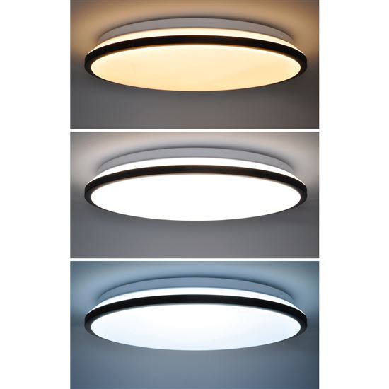 LED stmívatelné svítidlo Jamil v černém provedení spojuje elegantní design s chytrými funkcemi. Dálkovým ovladačem lze snadno měnit intenzitu světla a teplotu chromatičnosti od teplé (3000K) přes neutrální (4000K) až po studenou bílou (6500K). Svítidlo dosahuje výkonu 48 W a světelného toku až 3360 lm (při 4000K), což jej činí ideální volbou pro moderní interiéry.