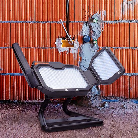 Maximální světelný výkon a absolutní mobilita – to je přenosný LED reflektor s výkonem 50W, světelným tokem až 5000 lm a integrovanou Li-Ion baterií s kapacitou 12000mAh. Nabízí tři režimy svícení (100 %, 50 %, 20 %) a výdrž až 10 hodin na jedno nabití.
