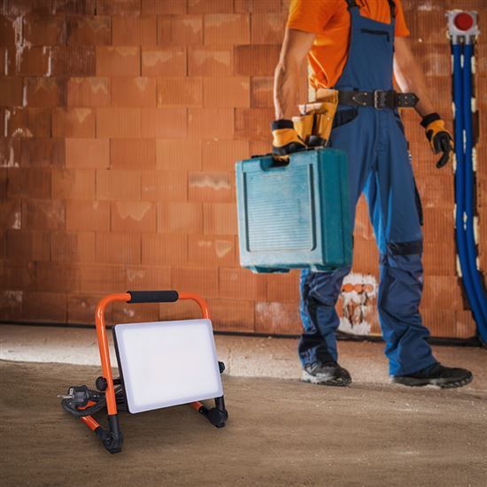 Výkonný LED pracovní reflektor s příkonem 100 W a světelným tokem 9000 lm je ideální pro profesionální použití na stavbách, v dílnách nebo garážích. Neutrální bílá (4000K) zajišťuje přirozené osvětlení, které neunavuje oči. Reflektor je vybaven sklopným stojanem a má široký úhel svícení 120°.