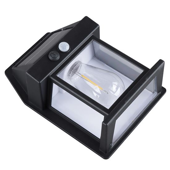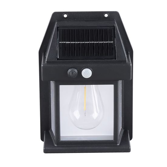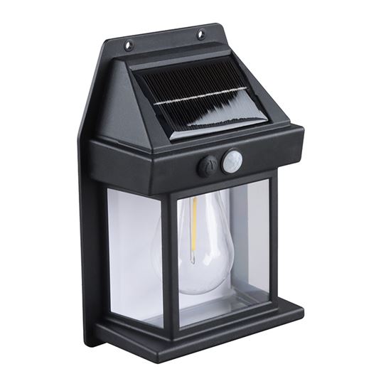 • LED venkovní solární nástěnná lucerna s vestavnou žárovkou, pohybovým a světelným senzorem