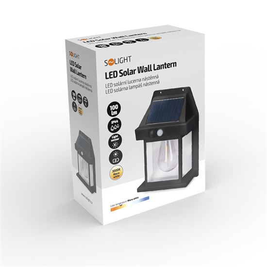 Solight LED solární lucerna nástěnná, teplá bílá, 12x17cm, černá | SOLIGHT