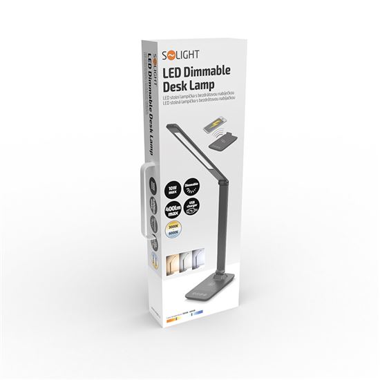 Solight LED stmívatelná lampička s bezdrátovým nabíjením, 10W, změna chromatičnosti, šedá | SOLIGHT