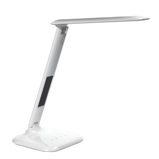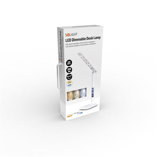 Solight LED stmívatelná stolní lampička s displejem, 7W, volba teploty světla, bílý lesk | SOLIGHT