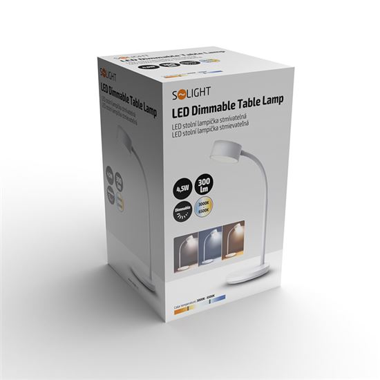 Tato bílá verze praktické stolní lampičky nabízí stejné funkce jako její černý protějšek – plynulou změnu teploty světla (3000K/4000K/6500K), tři úrovně jasu a jednoduché dotykové ovládání. Skvělá volba pro psací stůl, noční stolek i domácí kancelář.