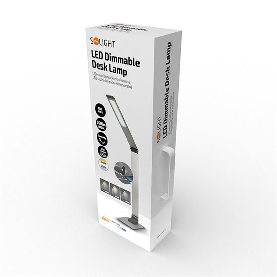 Prémiová stolní lampička z broušeného hliníku spojuje elegantní vzhled s výkonným a flexibilním osvětlením. Uživatel si může zvolit teplotu světla mezi 3000K, 4500K a 6000K a přizpůsobit tak osvětlení svým potřebám. Díky třístupňovému stmívání je možné regulovat intenzitu světla jednoduše dotykem prstu.