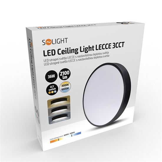 Moderní stropní LED svítidlo s maximálním výkonem 36 W nabízí výjimečnou funkčnost a variabilitu díky integrovanému přepínači teploty světla. Uživatel si může zvolit mezi teplým (3000 K), neutrálním (4000 K) a studeným bílým světlem (6000 K) podle aktuální potřeby či atmosféry v místnosti. Díky vysokému světelnému toku až 2100 lm (při 3000 K) a širokému vyzařovacímu úhlu 120° je svítidlo ideální volbou pro efektivní osvětlení obytných i komerčních prostor.