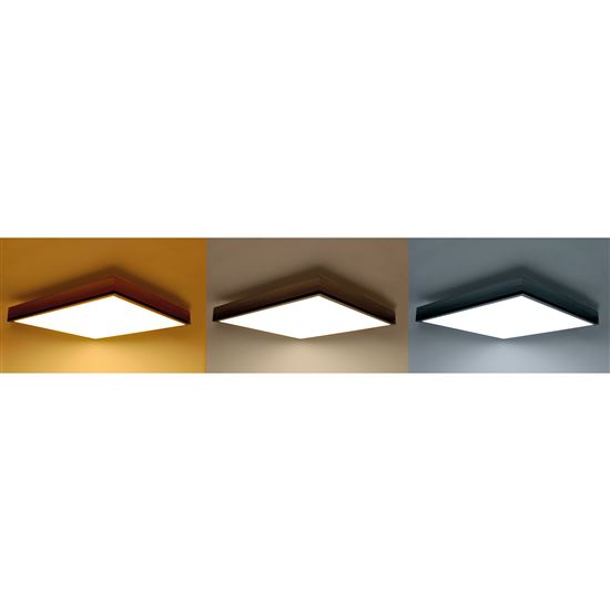 Moderní LED stmívatelné svítidlo s dekorem dřeva spojuje stylový přírodní vzhled s inteligentní technologií osvětlení. Pomocí přiloženého dálkového ovladače lze plynule stmívat intenzitu světla, měnit teplotu chromatičnosti od teplé bílé (3000K) po studenou (6500K) nebo zvolit některý z přednastavených režimů. S maximálním příkonem 40 W a světelným tokem až 3000 lm osvítí i větší místnosti pohodlně a rovnoměrně.