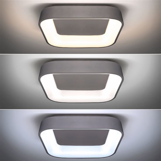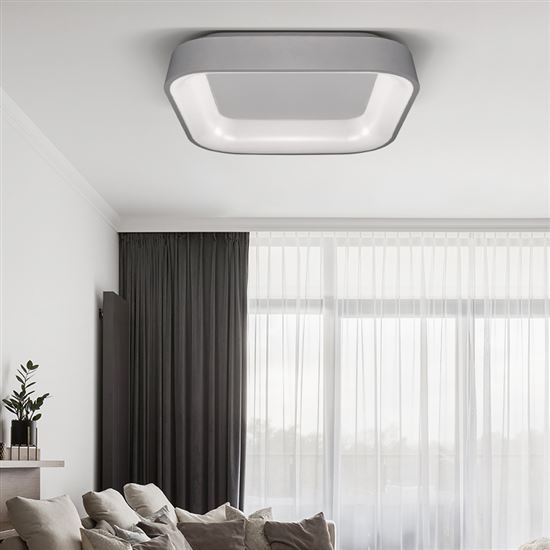 Díky použitým materiálům (Fe + PS) a elegantnímu šedému designu působí svítidlo moderně a nadčasově. Rozměry 450 × 450 × 100 mm zaručují působivý vzhled na stropě i stěně. Krytí IP20 je vhodné pro použití v interiéru, a dlouhá životnost LED (20 000 h) přispívá k bezúdržbovému provozu. Svítidlo patří do energetické třídy G a představuje ideální kombinaci výkonu, designu a funkčnosti pro chytrou domácnost.