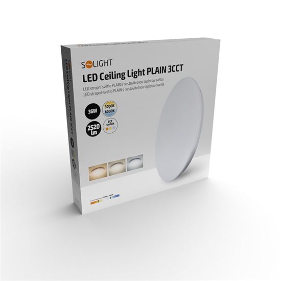 • Solight LED stropní světlo Plain, 3CCT, 36W, 2520lm, 3000K, 4000K, 6000K, kulaté, 45cm