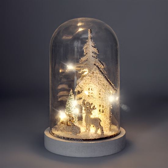 Tato roztomilá LED dekorace zachycuje zasněženou zimní krajinu s malebným domkem a okamžitě navodí tu pravou vánoční atmosféru. Svým kompaktním rozměrem 18 × 11,5 × 11,5 cm se hodí na poličku, okenní parapet nebo sváteční stůl. Deset integrovaných LED diod s teple bílým světlem jemně osvětluje detailní prvky dekorace a vytváří útulné světelné pozadí.