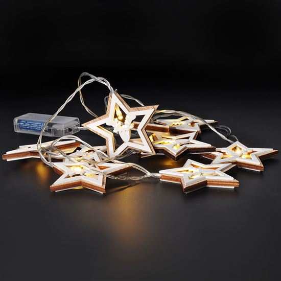 • Solight LED vánoční řetěz hvězdy, 10x LED, dřevo, 1,5m, 2x AA